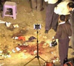 فقد حرص مفجر القنبلة البدائية -التي تزن قرابة 5 كيلوجرامات فقط من مادة TNT وجاءت معظم الإصابات من كمية المسامير الضخمة التي بها والتي يبلغ طول الواحد منها 5 سنتيمترات- على تفجيرها وسط مجموعة من السياح ليقتل أمريكيا وفرنسية ويصيب 8 آخرين من السياح (3 أمريكيين و3 فرنسيين وإيطاليا وتركيا)، بالإضافة لـ9 من المصريين، وظهر من جثة هذا الانتحاري المشوهة أن منطقة البطن هي أكثر منطقة متهتكة مع الوجه، مما رجح معه خبراء الأدلة الجنائية أن يكون قد ربطها على بطنه وفجرها، وهو ما أكدته مصادر أمنية أيضا للصحفيين.