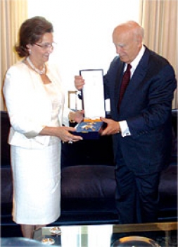 في قصر الرئاسة وسط أثينا، منح أول من أمس الرئيس اليوناني كارلوس بابولياس وسام «الصليب الأعظم لكتائب العنقاء» من الدرجة الأولى، أعلى وسام يوناني، لسوزان مبارك قرينة الرئيس المصري حسني مبارك؛ وذلك لجهودها الخيرية في مجال النهوض بالطفل والأسرة ولدورها البارز في إحياء وإعادة بناء مكتبة الإسكندرية.