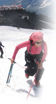 إنها الثانية فجراً، وضعت حذاء التسلق، تأكدت من ربط الحبال ومسكت بفأس الثلج، وبدأنا التسلق، كان الظلام شديداً عدا عن النجوم المتلألأة في السماء الصافية، وبدأت أدعو الله أن يوفقني بالتسلق والنزول بسلامة في أقل من 24 ساعة، هي كل ما تنبأت به أخبار الطقس من عدم وجود عواصف شديدة، كان يجب أن أتحلى برباطة الجأش، وصممت على أن أدفع نفسي بكل قوتي وألاّ أتوقف بالرغم من صعوبة التسلق وتنفسي الصعب. كان الصّمت جميلاً وبدأت حركاتي تتسم بالتناغم، صوت الثلج تحت أقدامي ، ثم صوت الفأس وهكذا...