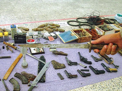 وضم المعرض، الذي اقيم على قاعة المتحف الوطني بمدينة السليمانية على مدى ثلاثة ايام، اسلحة رشاشة ومدافع هاون من مختلف العيارات واحزمة ناسفة والعشرات من المسدسات العادية والكاتمة للصوت والقنابل اليدوية والعبوات الناسفة وأسلاك ربطها وبطاريات تفجيرها والعشرات من الهواتف الخلوية المستخدمة في تفجير العبوات والاحزمة الناسفة، بالاضافة الى اقنعة الوقاية من الاسلحة والغازات السامة واجهزة الحاسوب الالكتروني، فضلا عن العديد من قطع السلاح الابيض في مقدمته المغوار الذي يستخدمه ابناء العشائر العربية في مناطق حمرين على نطاق واسع وخصوصا الرعاة في الدفاع عن انفسهم من هجمات الحيوانات المفترسة او ما شابه ذلك، وهو عبارة عن عصا غليظة تحمل في احد رأسيها كتلة من الاسفلت على شكل كرة صغيرة تغرس فيها الدبابيس إمعانا في الحاق الأذى بالعدو. وكذلك ضم المعرض العديد من السيوف والحراب التي استخدمها المسلحون في ذبح «الاسرى» من افراد الشرطة وقوى الامن او المتعاونين مع السلطة العراقية او حكومة اقليم كردستان، وقد بدت على بعضها آثار دماء الضحايا بوضوح بالرغم من مرور اكثر من ثمانية اشهر على تاريخ الاستيلاء على تلك الاسلحة والمعدات اثر سلسلة من المعارك الطاحنة والدموية التي دارت رحاها بين المسلحين المنتمين الى تنظيم ما يسمى بـ«دولة العراق الاسلامية» ـ وثيق الصلة بتنظيم «القاعدة»، والذين كانوا قد فروا من مدينة بعقوبة اثر العمليات المشتركة للجيش العراقي والقوات الاميركية هناك منتصف العام الماضي، وبين قوات الشرطة الكردية التابعة لحكومة الاقليم. وكانت القوات الاميركية قد قدمت الدعم اللوجستي والغطاء الجوي لتلك القوات في تلك المعارك التي سقط خلالها العشرات من كلا الطرفين قبل ان تبسط الشرطة سيطرتها الكاملة على مناطق جبال حمرين التابعة لمحافظة ديالى والتي تشمل سلسلة من القرى والقصبات التي تقطنها غالبية عربية مثل «آل بو دراج والعوامر ومزري طلب وجاغات وخلاوي وباهزة وآل بو كعيد» وغيرها من القرى المنتشرة في منطقة وعرة ومترامية تسمى التبج .