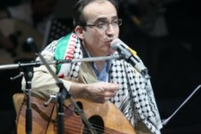 وواصلت أيضا وسط خشوع الجمهور أمام هذه التلاوة وانتظارا لصاحب الفخامة الفنية !! : " جاء مؤرخ الألم.. صوته يرافق سيارات الاسعاف المحاصرة 000 دمعات الأمهات المتجمدة على الخد 000 نظرات الأطفال الذين شلعوا من طفولتهم فغدوا حكماء هذا العصر 000 صوته ينزف من حنجرة أب يقلب أجساد أطفاله الذين اغتيلوا برصاصات في الصدر بحثا عن صواريخ المقاومة ! صوته يتجول حرا في مدينة القدس ..يطوف بالأسوار عاري الصدر رغم أنف العسكر !صوته يتنفس في سلال الخضار على مدخل باب العمود ويمسح العرق عن وجوه مجبولة برائحة الصبر ومسكية التطريز الفلاحي العريق !