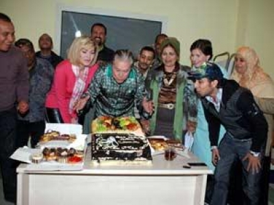 حسين فهمى يحتفل بعيد ميلاده في الأستديو