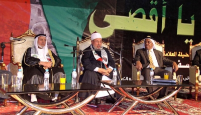 من جانبه أكد الشيخ حارث الضاري رئيس هيئة علماء المسلمين في العراق، على ضرورة تنظيم مهرجانات "تبقي قضية فلسطين والمسجد الأقصى حية في ذاكرة الأمة".