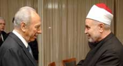 "قطيعة تقطع بيريز واللي يعرفه واللي كانوا معاه.. عليه اللعنة إلى يوم الدين".. هكذا قال شيخ الأزهر د. محمد سيد طنطاوي بانفعال شديد في تصريحات صحفية على هامش لقائه طلبة الجامعات المصرية، محاولاً تبرئة ساحته من الانتقادات التي انهالت عليه عقب نشر صورة جمعته ورئيس إسرائيل شيمون بيريز على منصة واحدة في مؤتمر حوار الأديان الأخير بكازاخستان.