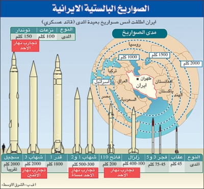 ـ (شهاب ـ 3) يبلغ مدى الصاروخ شهاب ـ 3 ألفي كلم، وهو قادر على بلوغ الأراضي الإسرائيلية التي تبعد عن إيران ألف كلم فقط. وأجرت إيران خلال السنوات الأخيرة تجارب على عشرات الصواريخ.