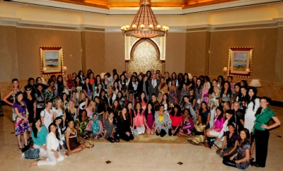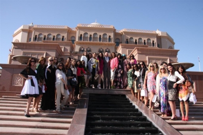 بمناسبة فوز هيئة أبوظبي للسياحة بجائزة "أفضل مجلس سياحة في العالم" ضمن "جوائز السفر العالمية 2009" قام رئيس ومؤسس الجائزة غراهام كوك و130 من ملكات الجمال في العالم بزيارة الي فندق قصر الامارات امس .