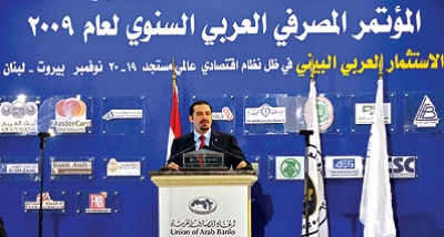 دعوة المصارف العربية إلى تولي الدور الريادي في توظيف الأموال العربية داخل البلدان العربية وفي مشاريعها الاستثمارية والإنمائية، شكلت محور المداخلات والنقاشات وستكون حكما في مقدم توصيات المؤتمر المصرفي العربي السنوي الذي بدأ أعماله أمس في بيروت بتنظيم من اتحاد المصارف العربية والاتحاد الدولي للمصرفيين العرب، بالتعاون مع البنك المركزي اللبناني وجمعية المصارف. وشارك سعد الحريري رئيس الحكومة اللبنانية، وراعي المؤتمر، توجهات المشاركين فاعتبر أن «التحدي أمامنا كحكومات هو أن ننجح في استقطاب المصارف العربية لتكون هي المحرك الأساسي للنمو والتنمية في بلداننا. ومسؤوليتنا اليوم أن نؤمن الاستقرار السياسي والتشريعي والإطار القانوني والمؤسساتي الملائم الذي يشجع المصارف العربية على تمويل المشاريع الاستثمارية. وهكذا نكون حافظنا على الرأسمال العربي في بلداننا».