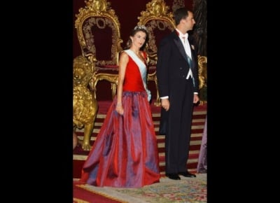 في العشاء الملكي الذي أقامه ملك أسبانيا ودعا اليه بعض الأصدقاء المقربين من العائلة الملكية تألقت الأميرة ليتيسيا بأناقتها ولفتت أنظار المدعوين والمدعوات