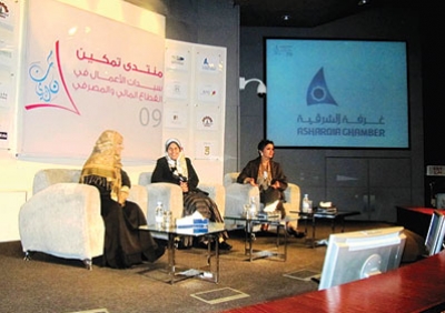 وشاركت في الحفل أيضا فاتن الهديان، وهي خبيرة مصرفية سعودية، حيث سردت العوائق التي تحول دون اعتلاء النساء مناصب قيادية في المصارف العربية، ومنها «السياسات التي تتبعها البنوك وخاصة رفض المرأة المتزوجة للعمل، والنظرة الخاطئة المشككة بقدراتها»، واقترحت أن يبدأ التركيز على التخطيط العلمي لتدريب المرأة العربية وتمكينها من استخدام مهاراتها وقدراتها لزيادة كفاءتها الإنتاجية.