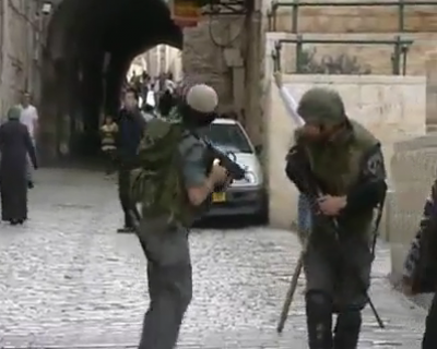شاهد فيديو لهروب جنود الاحتلال من المواجهات في القدس
