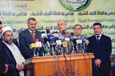 وقال عبد القادر العبيدي وزير الدفاع، إن «وجودنا في النجف لأسباب كثيرة ومن أهمها غلق مطار النجف الذي نهتم به أكثر من باقي المطارات بسبب قربه من الأماكن المقدسة»، مضيفا «الجميع يعلم بأن هنالك تهديدات أمنية من قبل الإرهاب وذيول النظام السابق، لذا تم اتخاذ إجراءات مشددة جدا ومنها غلق المطار». وأكد العبيدي أن «الهدف من هذه التهديدات إيقاف العملية السياسية الديمقراطية وخصوصا ونحن في مرحلة انتقالية مهمة جدا، لذا لا بد من وجود احترازات أمنية». وأضاف أن «أي معلومات أمنية تردنا سوف نأخذها على محمل الجد، وخصوصا أن الأماكن المقدسة هي خطوط حمراء بالنسبة لنا لا يمكن أن تتحول إلى أهداف، بل سنحميها بأجسادنا، لذا نتعامل مع أي تهديد بحذر».