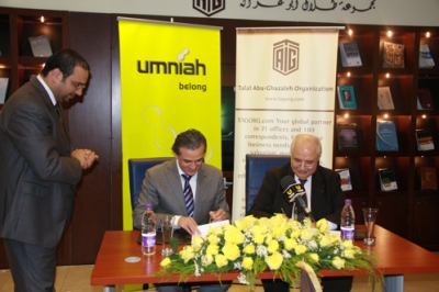 في حفل توقيع حضره مجموعة من ممثلي الجهات الإعلامية المحلية، قامت شركة "أمنية" ومجتمع طلال أبو غزالة للمعرفة والتي تعد أحدث مبادرات مجموعة طلال أبو غزالة، بتوقيع اتفاقية شراكة يوم الاثنين الموافق التاسع عشر من نيسان الجاري 2010، حيث قام كل من السيد طلال أبو غزالة مؤسس ورئيس مجموعة طلال أبو غزالة، والسيد إيهاب حناوي الرئيس التنفيذي في شركة أُمنية، بتوقيع الاتفاقية في مقر مجتمع طلال أبو غزالة للمعرفة في عمّان.