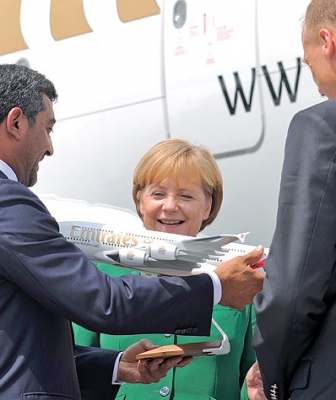 ميركل تفتتح معرض برلين الجوي وطيران الإمارات تطلب طائرات إيرباص إيه 380 بقيمة 11 مليار دولار