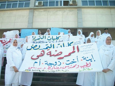انضمت الممرضات المصريات إلى فئات المتظاهرين والمحتجين التي يعج بها الشارع السياسي في مصر، وتظاهرن أمس ضد الفنانة غادة عبد الرازق ومسلسلها «زهرة وأزواجها الخمسة» الذي يعرض حاليا على عدد كبير من القنوات الفضائية وأثار جدلا كبيرا في الأوساط المصرية، حيث اعتبرنه يمثل إهانة لهن ولمهنتهن السامية وأنه يصور الممرضات في صورة متدنية، على حد قولهن.