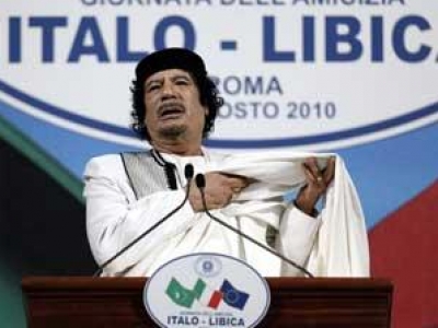 ووصل القذافي الأحد الماضي إلى روما في زيارة بمناسبة الذكرى الثانية لتوقيع اتفاقية صداقة ليبية إيطالية في 30 أغسطس 2008 في بنغازي شرق ليبيا، أنهت خلافا حول الحقبة الاستعمارية.