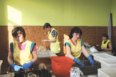 صعد كوزنتسوف إلى سيارته من نوع «لاند روفر»، وهو يزيل الطين من حذائه ليقوم بتفقد المباني هنا وفي ضاحية بإحدى المدن حيث يغسل عشرات الموظفين ويصبغون ويصففون الشعر، وبعد ذلك يفرزونه حسب اللون والطول. وعلى إحدى طاولات الفرز، حيث هناك نحو 500 جديلة. توقف كوزنتسوف للإطراء على جودة منتجه، وقال إن أفضل شعر هو الشعر العسلي الذي يتغير لونه في الضوء ويكون ملمسه ناعما.