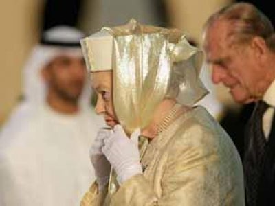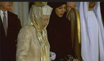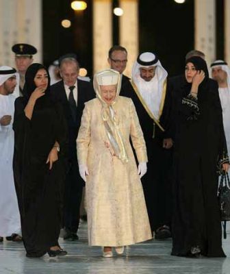 بالصور ..الملكة اليزابيث بالحجاب والعباءة خلال زيارتها للإمارات