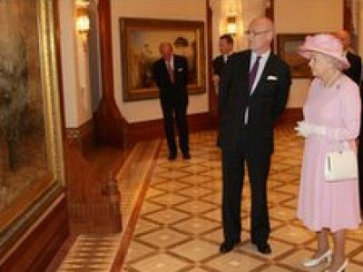 كشفت ملكة بريطانيا إليزابيث الثانية عن اهتمامها باللوحات الفنية المتعلقة بالخيول، فيما كانت تستعرض مع السلطان قابوس سلطان عمان أعمالاً فنية بريطانية ثمينة خلال زيارتها إلى مسقط.