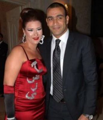 الحضري مع زوجته صابرين أثناء الاحتفال بعيد ميلادها
