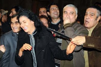 وقد لفتت غادة الأنظار إليها بعدم قبولها تقطيع تورتة الاحتفال إلا بعد حضور فريق العمل، فيما لوّح الفنان سامي العدل بالسكين مكشرا عن أنيابه في وجهها.