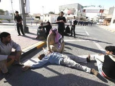 وقد انتشرت قوات الشرطة على الطرق الرئيسية المؤدية الى العاصمة المنامة في محاولة لمنع وصول مشاركين في الاحتجاجات التي دعى اليها الناشطون على الانترنت.