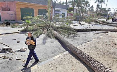 لم يبق للزعيم الليبي معمر القذافي الذي يتحصن في معسكر باب العزيزية بالعاصمة الليبية, غير مساحة محدودة للتحرك في طرابلس التي شهدت أمس تمرد بعض أحيائها، كما شوهد مسلحون معارضون له يجوبون شوارع المدينة دون مواجهة أو اعتراض من أحد. وقال منشقون على الزعيم الليبي وشهود عيان لـ«الشرق الأوسط» إن القذافي لم يعد يسيطر إلا على مساحة تقل تقريبا عن نصف مساحة المدينة، حول ثكنة العزيزية. وقال شاهد عيان من طرابلس إن تشكيلة من الدبابات والمجنزرات وراجمات الصواريخ تتخذ مواقع داخل دائرة حول العزيزية، مشيرا إلى أن كل الطرق المؤدية إلى مقر القذافي تحيط بها الآن المتاريس والعربات المجنزرة.