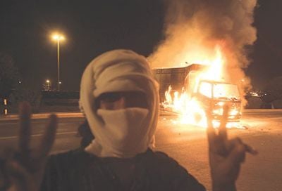وتصاعد الدخان فوق الميدان الذي كان مركزا للاحتجاجات. وقال صحافي من «رويترز» في صحار: إن مكتبا تابعا لوزارة القوى العاملة يحترق.
