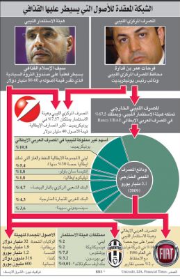 ولا تزال الحكومات الغربية التي اتخذت قرارات بتجميد موجودات ليبيا وموجودات عائلة القذافي تراقب البنوك والشركات لتتعرف على الحجم الحقيقي لموجودات ليبيا في الخارج. ومن المحتمل أن تتمكن الحكومات الغربية من الحصول على معلومات دقيقة بعد أن تم العثور على مكان محافظ البنك المركزي الليبي الذي كان مختفيا منذ بدء الاضطرابات في ليبيا.
