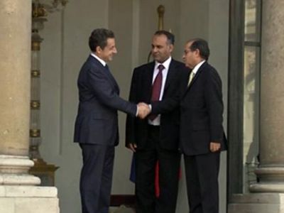 من ناحية أخرى، أصبحت فرنسا أول دولة في العالم تعترف بالمجلس الوطني الانتقالي الذي شكله المعارضون المناوئون لحكم العقيد الليبي معمر القذافي.
