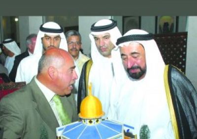 أعرب الشيخ الدكتور سلطان ألقاسمي حاكم إمارة الشارقة خلال استقباله الوفد الفلسطيني المشارك في أيام الشارقة التراثية مجددا عن دعمه للشعب الفلسطيني في قضيته العادلة وذلك خلال تسلمه هدية رمزية من الاسيرات والاسرى . فقد قام فهد أبو الحاج مدير مركز ابو جهاد لشؤون الحركة الأسيرة بتسليم الشيخ ألقاسمي مجسماً لقبة الصخرة المشرفة من صنع الأسرى باسم الأسرى ومؤسسات القدس وجامعة القدس وعلى رأسها أ.د.سري نسيبة . كما قامت فداء ابو شلبك رئيسة جمعية الاسيرات المحررات بتسليم الشيخ القاسمي قطعة من المطرزات التراثية الفلسطينية مقدمة من الأسيرات .