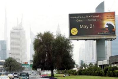 أزالت بلدية إمارة دبي بدولة الإمارات لوحات إعلانية ضخمة تدعي أن الشهر المقبل سيشهد "يوما عظيما ورهيبا"، وهو ما اعتبره البعض ادعاء بنهاية العالم أو يوم القيامة.