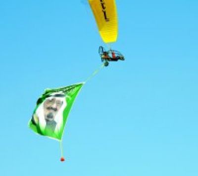 وستستمر العروض الجوية برفع صورة خادم الحرمين الشريفين والتحليق بها يومياً في سماء جدة في كورنيش الحمراء، ويبلغ حجم الصورة (9 × 6) أمتار، وقال السلماني: «إنه شرف كبير لي أن أحلّق في سماء جدة بصورة خادم الحرمين الشريفين، وأعتبر هذا الحدث بالنسبة إلي كطيار شراعي لحظات تاريخية، وسنسعد جميعاً في خلال الأيام المقبلة بالتحليق بهذه الصورة لتبقى صورة خادم الحرمين الشريفين فوق هام السحب دائماً وأبداً».