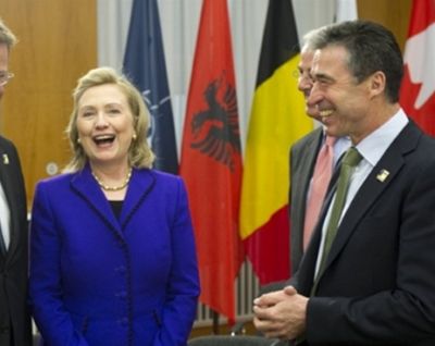 اعلن الأمين العام لحلف شمال الأطلسي أندريس فوغ راسموسن ان وزراء خارجية الدول الاعضاء في الحلف اكدوا عدم تغيير الاستراتيجية المتبعة ازاء الوضع في ليبيا. وقال في مؤتمر صحفي عقب اجتماع لوزراء خارجية الحلف في برلين يوم الخميس 14 ابريل/نيسان "يجب ان تتوقف جميع العمليات ضد المدنيين وكذلك التهديدات.. ويجب على النظام الليبي توفير مدخل مباشر وفوري للمساعدة الانسانية الى ليبيا".