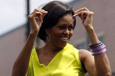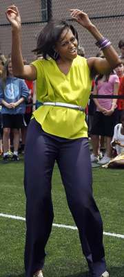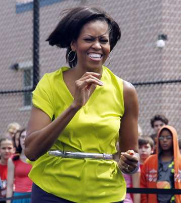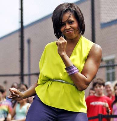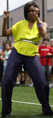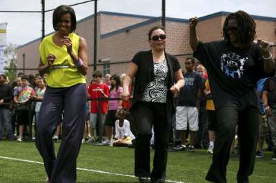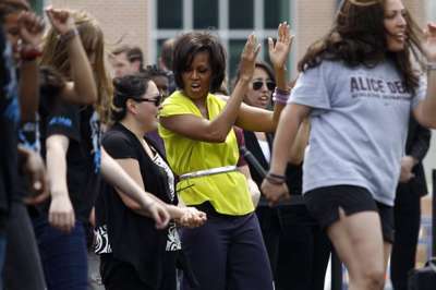 غلب حماس الرقص سيدة أمريكا الأولى ميشيل أوباما، أثناء زيارتها إلى إحدى المدارس الثانوية الأمريكية، ضمن حملتها "هيا لنتحرك" التي تهدف إلى محاربة السمنة.