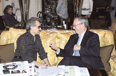 استقبل الأمير الوليد بن طلال رئيس مجلس إدارة شركة «المملكة القابضة»، الرئيس التنفيذي لشركة «غوغل» إيريك شميدت في فندق جورج الخامس في باريس. وبحث الأمير الوليد مع شميدت آفاق التعاون المستقبلي بين شركة «المملكة القابضة» وشركة «غوغل»، وعددا من القضايا الاقتصادية والاجتماعية. إضافة إلى التباحث حول مجالات التعاون في إدارة مجال التكنولوجيا بين شركة «المملكة القابضة» و«غوغل»، كما تطرق الاجتماع إلى استثمارات الأمير الوليد في الولايات المتحدة الأميركية، باعتباره أكبر مستثمر أجنبي.