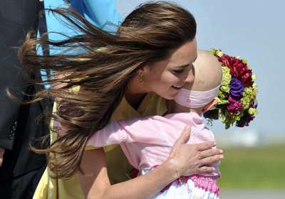 طفلة مصابة بالسرطان تهز مشاعر دوقة كامبريدج لتترقرق الدموع فى عينيها، حين مدت الطفلة دايمون مارشال (6 أعوام) ذراعها، وهى تقدم لكيت باقة ورد أثناء وصولها لمطار كيلجيرى فى كندا أمس الخميس، حسب ما نشرته صحيفة "الديلى ميل" البريطانية صباح اليوم.