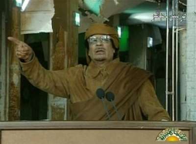 ودعا القذافي في خطابه قبل قليل، السكان في طرابلس بشكل خاص وفي ليبيا بشكل عام للخروج من بيوتهم فورا وسريعا للدفاع عن ارضهم وبلدهم ونفطهم، وتطهير ارضهم بسرعة.
