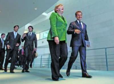 واعتبرت أوساط الرئيس الفرنسي، أن «في حال عدم التوصل إلى اتفاق فسيكون ذلك مؤشراً سيئاً، وسيكون الموضوع الأساس عندها في قمة مجموعة العشرين عجز منطقة اليورو عن معالجة مشاكلها». وفي وقت تهدد أزمة الديون خصوصاً الأزمة اليونانية، بأن تتحول إلى أزمة مصرفية، أكدت مركل أن باريس وبرلين «مصممتان على القيام بما هو ضروري لإعادة رسملة المصارف بهدف تأمين منح قروض للاقتصاد». فيما شدّد ساركوزي على أن «الاتفاق تام» بين البلدين في هذا الصدد، ووعدت مركل بـ «التعامل مع مصارف البلدين وفق المعايير ذاتها». وتفضل باريس حتى الآن، اللجوء إلى الصندوق الأوروبي للإنقاذ المالي، في حين تدعو برلين إلى أن تسحب الدول أولاً من صناديقها الخاصة.
