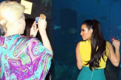 سعت عارضة الأزياء الشهيرة كيم كاردشيان إلى استعراض أنوثتها أمام كاميرات المصورين، خلال مشاهدتها أكبر حوض للأسماك في فندق بدبي؛ التي تقوم بزيارتها حاليا.