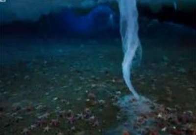 وأضافت الصحيفة: إن طاقم التصوير كان يشاهد بعينيه هذا العمود يهبط إلى قاع البحر، وفي ثوانٍ كان الماء الذي يلامس العامود يتجمّد، ليتحول إلى ما يشبه الإسفنج الصلب، وكان يقتل كل ما في طريقه من حيوانات قنافذ ونجوم البحر.