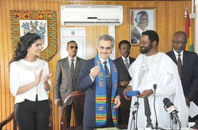 وقد تسلم الأمير الوليد مفتاح مدينة أكرا من ألفريد فانديربوي، عمدة مدينة أكرا، وذلك في مقر رئاسة البلدية، كما قام الأمير الوليد بجولة تفقدية، لاستثماراته عن طريق شركة المملكة القابضة والمشاريع الخيرية، عن طريق مؤسسة الوليد بن طلال الخيرية.