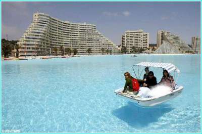 يقع المسبح في شيلي ويبلغ طوله أكثر من كيلو متر و يسع 66 مليون جالون من الماء، واستغرق انشاؤه 5 سنوات