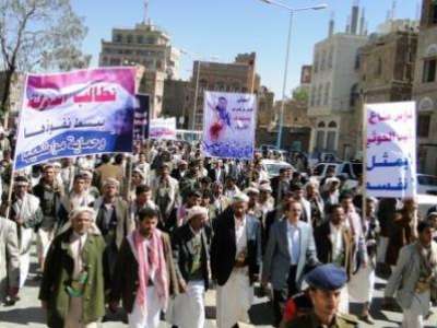 اتهم متظاهرون بمحافظة صعدة حكومة الوفاق الوطني بالعمالة لأميركا،ن مجددين مطالبتهم بإسقاط النظام