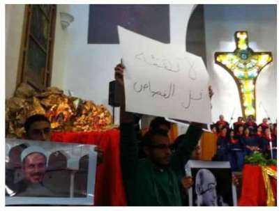 طالب عدد من المتظاهرين داخل إحدى الكنائس خلال الإحتفال بعيد الميلاد المجيد بالقصاص من قتلة الثوار قبل تهنئة البابا شنودة بأعياد الأقباط .
