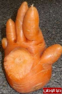 وذكرت صحيفة "ديلي ميل" البريطانية أن ديان نيل من إيسكس البريطانية لم تصدق عينيها عندما اقتلعت جزرة برتقالية غريبة الشكل، تبين عند تفحصها بشكل جيد أنها أشبه بكف يد يمنى فيها 5 أصابع، طولها شبيه بطول أصابع يد حقيقية.