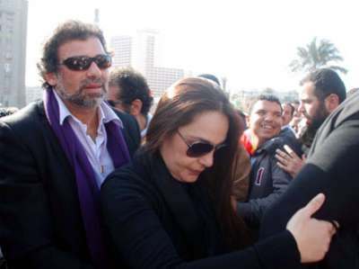 وقد تولى حماية النجمة المصرية كل من خالد يوسف، ومحمود قابيل وخالد صالح الذي حرص على الامساك بها حتى لا تتعرض لمضايقات من شدة الزحام الذي شهده الميدان في الذكرى الأولى لـ "ثورة 25 يناير".