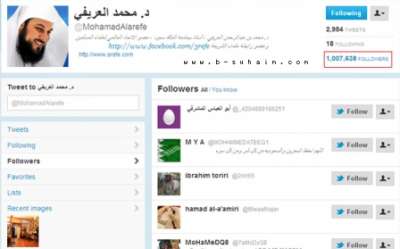 نفى الداعية الإسلامي السعودي د. محمد العريفي قيامه بشراء متابعين له في شبكة التواصل الاجتماعي "تويتر"، وقال إنه لا يعلم طريقة لفعل ذلك. وبرَّر العريفي ارتفاع عدد متابعيه، والذي وصل إلى أكثر من مليون شخص، لمشاركته الفاعلة من خلال الموقع وتواصله الدائم مع متابعيه، حيث أوضح أنه يصل خلال الدقيقة الواحدة أكثر من 9000 تغريدة، يطالب فيها متابعوه بالرد على سؤال ما أو استفسار.