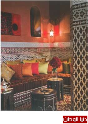 وعبر درج ضيق مزين بالمنحوتات العريقة يصل النزيل إلى الطبقة الثانية التي تتوزع فيها غرف المبيت، ومنها إلى الطبقة العليا التي يتوسطها حمام سباحة ومكان للاسترخاء تتوزع عليه الأرائك التقليدية الملونة، والموقع المراد له أن يكون ملاذا للراحة والخصوصية يكشف أجمل المناظر من على علو، من دون أن يكون مكشوفا على أي رياض آخر.