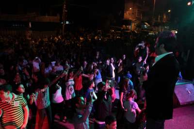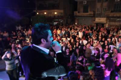 كان محاطاً بالمسرح والمتأهب على شرفات المنازل، كما انه عبر عن سعادته عندما سمع الجمهور يردد أغانيه دون الموسيقى، وقبل مغادرته إحتشد حوله الصبايا لإلتقاط الصور التذكارية معه.