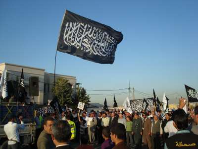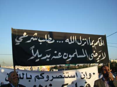قام حزب التحرير في الاردن باعتصام امام السفارة السورية في عمان تحت عنوان (وما النصر الا من عند الله).